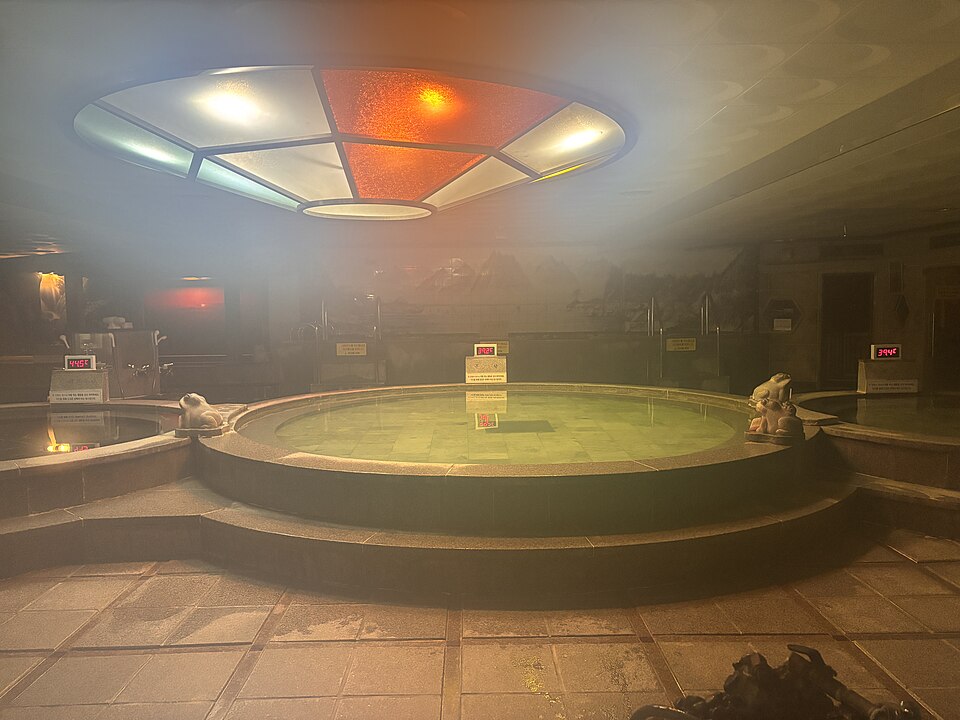 아무튼 대전의 유성구에도 온천 목욕탕이 있는데 거기도 많이 갔었다. 당시 초딩 1학년이던 나는 센세이셔널한 탕을 맞이하게 된다. 완전 초록색 허브탕을 보게 된 것이다. 가까이 가니 허브 냄새가 솔솔. 계속 맡다보면 어지러울 때도 있는데 여튼 보글보글 끓는 초록물은 기분 탓인건지 농도가 조금 짙어보이는 데 여튼 들어가면 너무나 뜨겁다. 지금도 그 뜨거움을 버티지 못하고 발목만 데우고 나오지만 같이 가는 아빠 혹은 다른 사람들을 보면 저런 열탕을 어떻게 견디나 모르겠다.